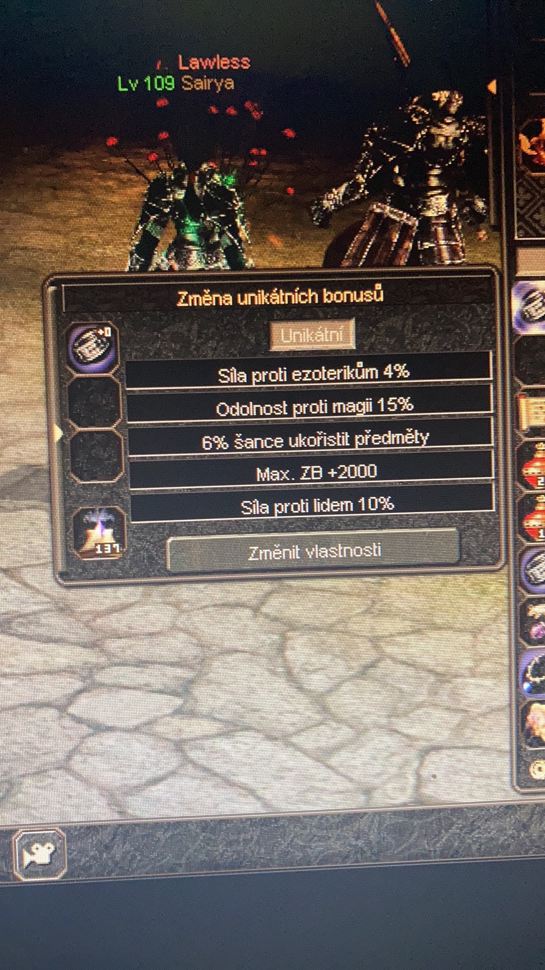 Jestli chceš jet na CB, můžeš nechat shardy, pořídit nějaké low hněvky a natočit full útok šaman, ninja, nebo war. (127%)