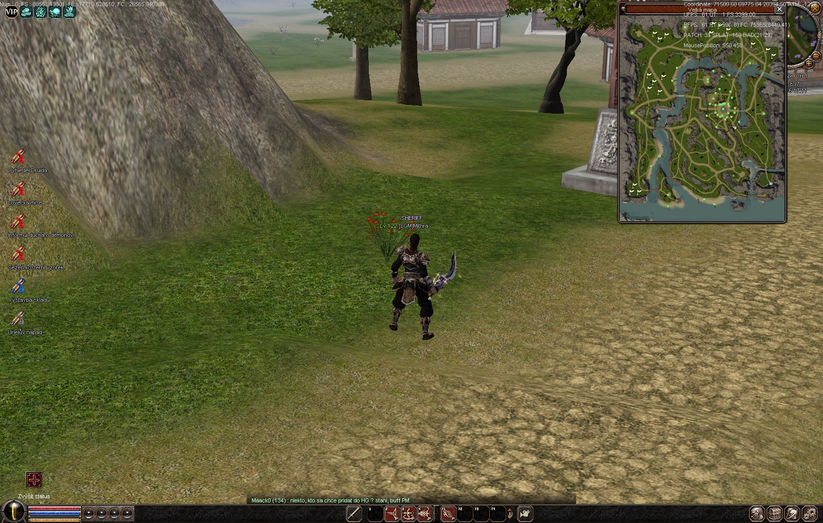Správce bitev --> zabral nám flek, kde stojíme (cech Sydorans) + na našem pozemku cechu jsou 2 stromy, které nám překáží.