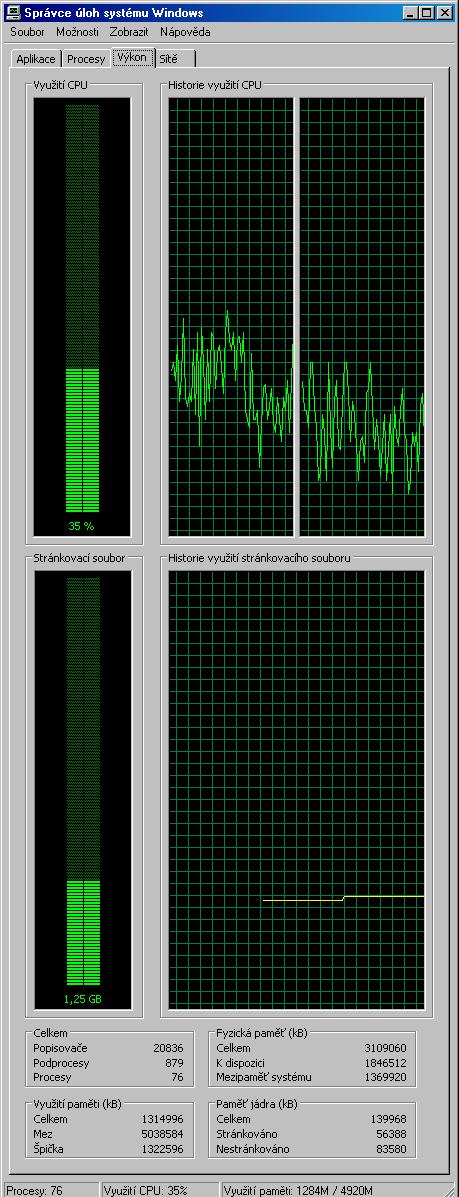 Omlouvám se, ale měl jsem pekelný pracovní týden, k něčemu jsem se dostal až dnes. Tak že před chvilkou mi notebook zahlásil nedostatek virtuální paměti. Dám se 2x4 obrázky. Neni to ani tak o tom, co v danou chvíli žere Ekura, měl jsem i 600 mega na velké okno a nějak jsem nesledoval, že by to padalo. Spadlo to, ale až tehdy, když haplo celé okno při změně postavy nebo změně kanálu. Jde o to, že něco prostě přetéká, jinak si nedokážu vysvětlit, proč je nedostatek virtuální paměti. Zde slíbené obrázky.