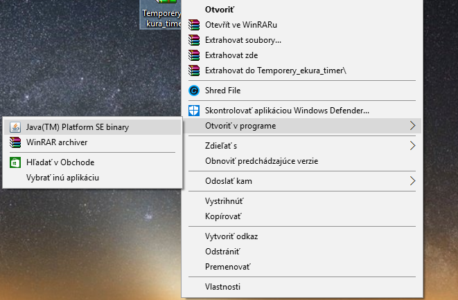 Veľmi divné, keď som to nainštaloval a otvoril to cez ten program, tak mi to spustilo. Presne ako si to otváral cez tento program, tak v tom zozname máš položku "Vybrať inú aplikáciu", tam si zvolíš Java SE binary a zaklikneš možnosť že súbory typu .jar to bude vždy otvárať cez tú javumegac píše:Dám otvoriť v tom súbore ,,Java" a nič sa nestane. Nejaké rady?Itako píše:Musíš si tento doplnok stiahnuť a potom ti to pôjdeIgnis píše:Rozbalit a spustit ten *.jar - to je archiv pro javu.