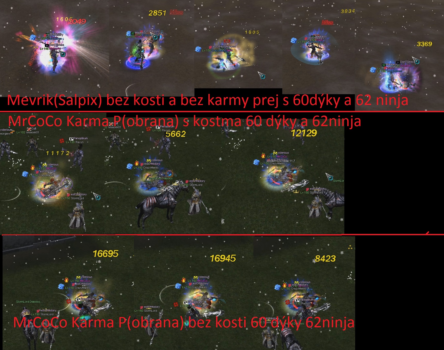 MrCoCo s karmou P obrana je vyfocen damage kdy měl jak kosti tak byl i bez nich a obrany stejné 62ninja a 60 dýky.
