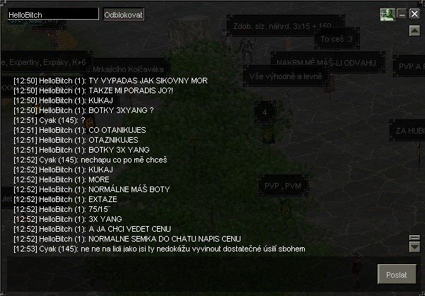 Každopádně s buffkou jsem ho asi 6x zabil a pak už se neukázal. Jen mi do PMka hodil: ,,mas ban tahni". Pak už nebyl online. :)