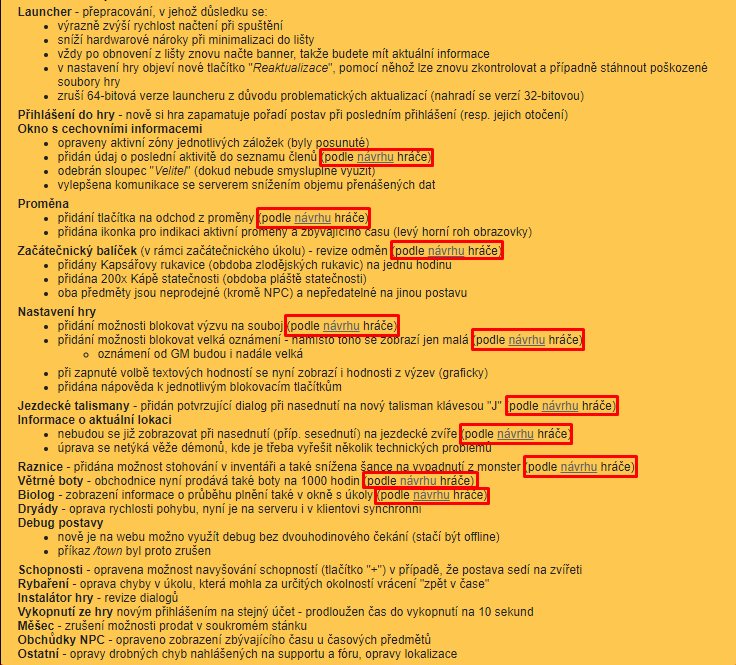 Na zaver chci rict, ze moje nazory NEMAJI slouzit jako vysmech/urazka smerovana na team. Jen me velmi mrzi, ze Ekura dostava spousty bezva napadu od komunity, no kdyz se podiva kazdy na seznam zmen, tak je to trochu k placi, ze to jsou furt jenom textove upravy, nebo nejake drobne upravy. Proc to uz neni jako kdysi? - viz. obrazek z prilohy. Proc kazdy tyden ve ctvrtek po udrzbe vidim nekolik lidi psat ironicky "konecne ten velkej update (textove zmeny)", proc vidim (nejnoveji cechovni pozemky v prvnich mestech) prispevky od teamu na foru, ze co chvile bude nejaka supr zmena? Na ty pozemky jsem byla hodne zvedava a docela jsem se tesila, no porad nic. Myslim, ze velka chyba je to, ze vy, jako team slibujete komunite nejake zmeny, pricemz komunita porad ceka. Nedivim se, ze mnoho lidi stratilo ten elan z hrani Ekury, vcetne me, pricemz ja nejsem jeste ani zdaleka u konce toho, co vse se na Ekure da delat.