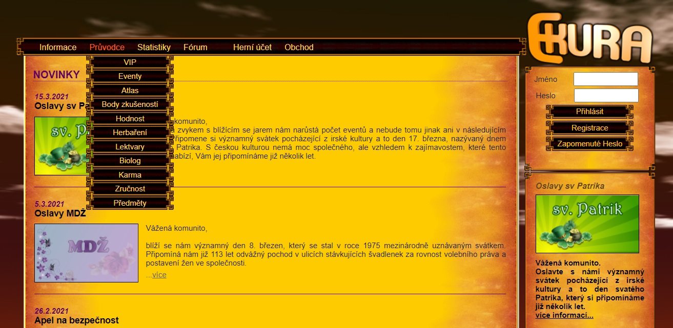 Všimol som si, že na stránke "ekura" sa cez rubriku "prúvodce" dokážu hráči dopracovať len k niekoľkým témam a informáciám.