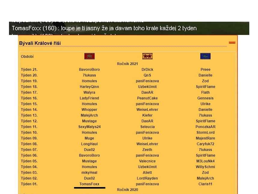 NEvim jestli víte ...Tomas dava krále každý 2. týden ......a jestli ne .. " tak si to sem jen odložim " ....anb se mužete jit podívat do ZP ..čeká tam od rána at se podívate jak je králem