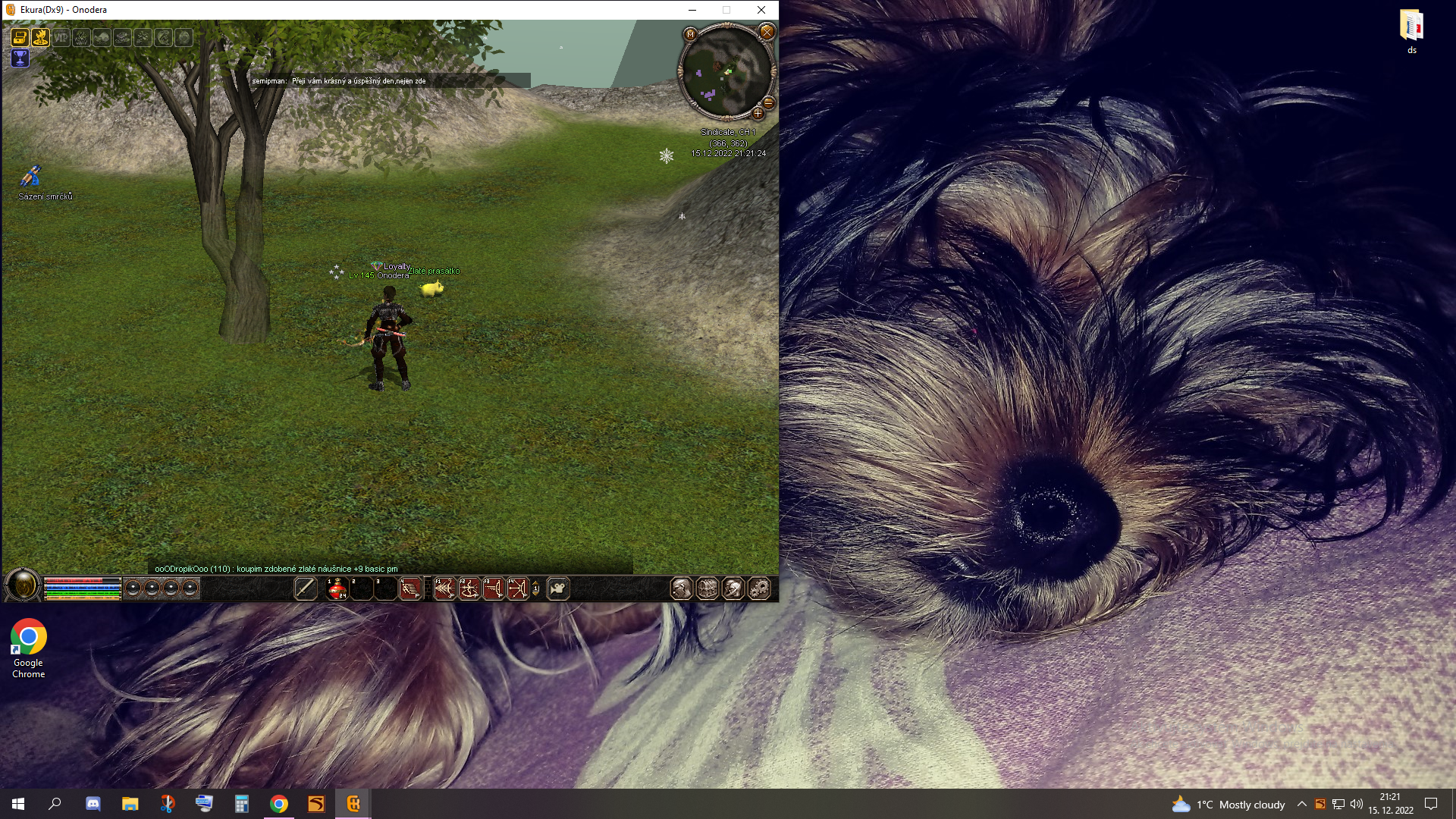 Na screenshotu chceme vidět také souřadnice a čas (ta čísla vpravo nahoře pod minimapou).