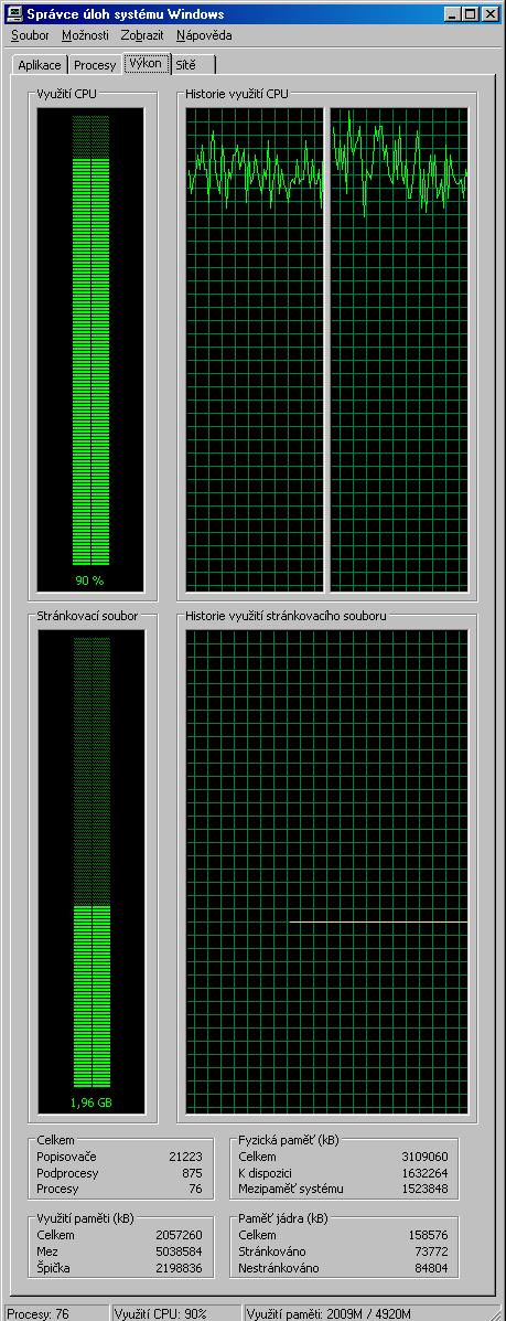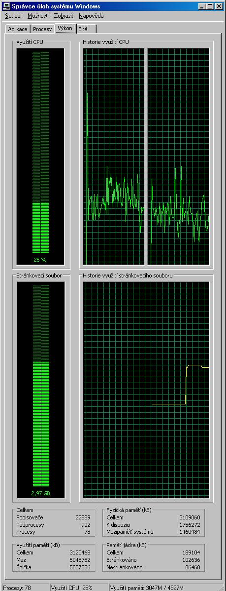 Omlouvám se, ale měl jsem pekelný pracovní týden, k něčemu jsem se dostal až dnes. Tak že před chvilkou mi notebook zahlásil nedostatek virtuální paměti. Dám se 2x4 obrázky. Neni to ani tak o tom, co v danou chvíli žere Ekura, měl jsem i 600 mega na velké okno a nějak jsem nesledoval, že by to padalo. Spadlo to, ale až tehdy, když haplo celé okno při změně postavy nebo změně kanálu. Jde o to, že něco prostě přetéká, jinak si nedokážu vysvětlit, proč je nedostatek virtuální paměti. Zde slíbené obrázky.