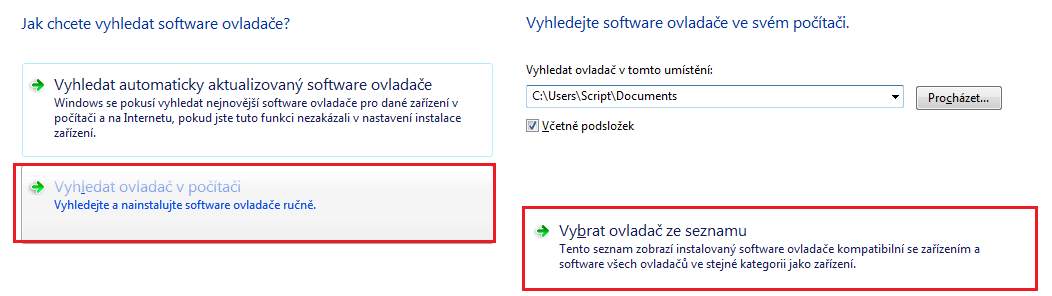 7. Vybereme volbu "Vyhledat ovladač v počítači" a dále "Vybrat ovladač ze seznamu"