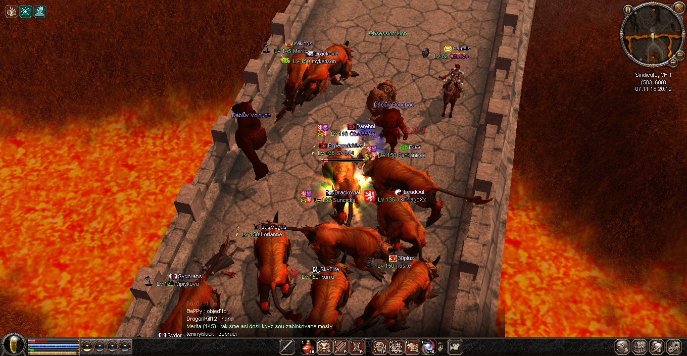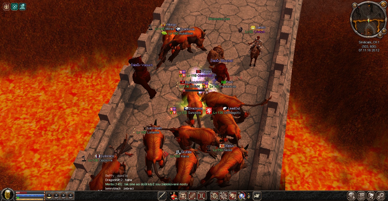 Další most byl už zatarasený, ale naštěstí jen těžkými meteory a už je několik hráčů ničilo. Nakonec se mi podařilo proběhnout s použitím jednoho požehu - (hráč z cizí říše ničil meteor kouzly a to se trefilo i do mě).