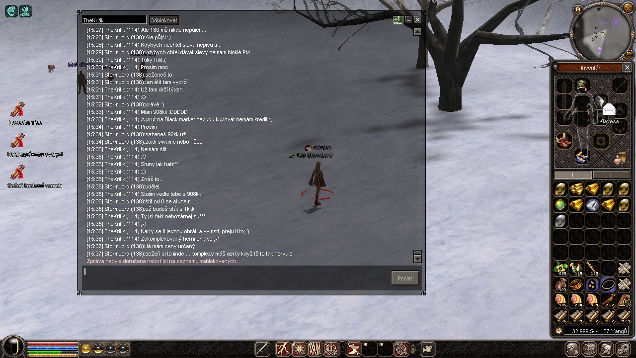 Já hraju tak 5 měsíců co jsem od 0 začal ... On je 114 kterého tu pár měsíců vídám ... ¨Může chodit do swampu kde má 100kk za kolik za 30 minut ? Proč bych měl já slevovat svoje zboží ? Mám určenou cenu ber nebo nech být ... v obchodě ti taky nesleví jen proto že vyděláváš o 10 tisíc míň než někdo jiný takže to co píšeš je úplnej blábol ;) :think: