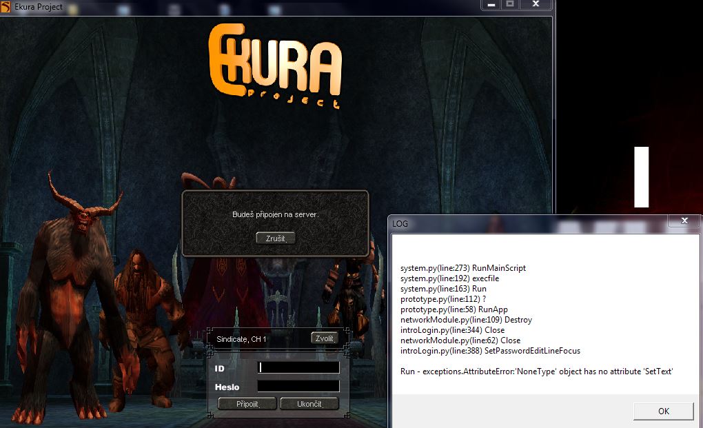 Poté ,když to odklikám a chci se lognou znova do hry: