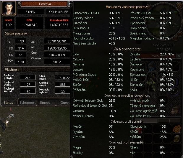 Např. kdyby jsi měl účes a kámen na char tak by se ti normální složka útoku zvedla o 48%