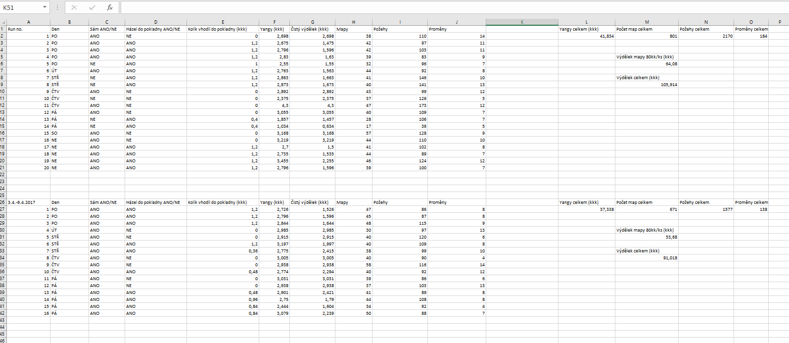 Já jsem takovej rozhazovačnej člověk, mám tedy ve zvyku utratit část utržených peněz z dropování ještě před tím, než je stačím přelejt na hlavní postavu, která u sebe drží většinu peněz, co mám. Když mám tedy náladu, tak si po dropování sepisuju množství utržených yangů, případně dražších předmětů. Občas si taky sepisuju co prodávám a za kolik. Využívám k tobě gůglácký tabulky, protože k tomu má člověk přístup všude.