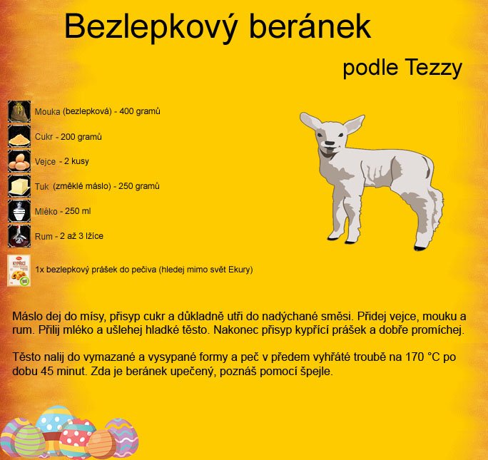 Vzhledem k tomu, že se blíží Velikonoce, tak by Ah-Yu ráda upekla svému dítěti beránka. Má však jeden problém. Její dítě je alergické na lepek a bohužel Ah-Yu ztratila recept.