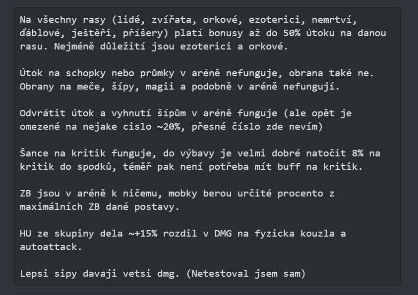 Edit1 - ještě dodám (i když teda tohle si většina řekne logicky) že jelikož budete točit do věcí co nejvíc bonusů na zvěř/neu/orky atd atd, je nejlepší točit takový věci, kde můžete točit všech 5 bonusů. Takže třeba já, nosím na daggera do arény shardy (točitelných 5 bonusů). A takhle to platí i u zbytku výbavy.